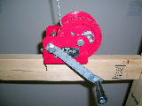 Manual Winch If a patient can get up and stand on their own, they can use a manual winch. This winch is similar to those used for pulling boats onto trailers and works very simply. To raise the harness to a comfortable level, simply rotate the crank. The ratchting action holds you up. This allows a very fine degree of adjustment and the adjustment can be done by the patients themselves. To lower yourself, you release a catch, and you can then lower yourself. It requires no external power or maintenance of any kind. However, it is not strong enough to list the entire weight of a patient from a sitting position.