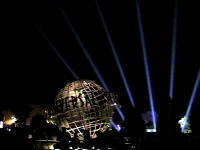Universal Studios spinning globe at night