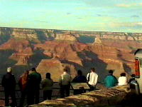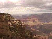 April 18. 1996 OK - I put in the cruise control and now I can't get the car to start. Time to get the professionals - so I walk over to a local garage and ask for a mechanic. The 16 year old sitting on the chair says he's the mechanic. Not being too choosy, I show him the RV and he starts working on the RV. It turns out that it was just badly flooded and the choke had to be manually opened in order to start the RV. So the wonder-kid mechanic comes to the rescue. We leave Flagstaff and head for the Grand Canyon. It's very windy and cloudy when we get there. The light was changing all the time with shadows on in the canyon.