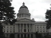 March 4, 1996 - Woke up, had oatmeal for breakfast. Drove out to Sacramento. Took pictures of the capital. The weather held out while we were there. As we drove to San Francisco, it started to get windy and rainy. We drove to Pier 39 and found some meter parking. It was pouring rain, but we waited until it stopped. Then we stopped in fisherman's wharf. Next we drove across the Golden Gate bridge. There was a warning about RV's using the right most toll booth, but I ignored it and went through a normal booth. Later I discovered the awning had broken loose. I should probably pay more attention to the signs! It was very windy. It was like driving a sail across the bridge. Then we drove to my sister Eileen's place. My brother Dave came by for a visit. I'm still coughing from my cold. I hope I don't give it to anyone else.
